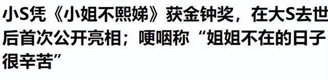 荆楚网——小S凭《小姐不熙娣》获金钟奖,在大S去世后首次公开亮相;哽咽称“姐姐不在的日子很辛苦”