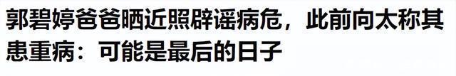 潇湘晨报——郭碧婷爸爸晒近照辟谣病危,此前向太称其患重病:可能是最后的日子